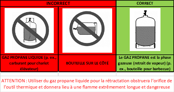* N’utilisez jamais l’outil thermique avec l’embout de combustion contre une surface, cela pourrait enflammer les matériaux que vous rétractez.